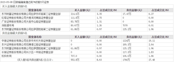 从西陇科学5月8日龙虎榜来看,安信证券股份有限公司武汉中北路证券营业部、广发证券股份有限公司汕头梅溪东路证券营业部、海通证券股份有限公司常州健身路证券营业部分别占据卖出前三。
