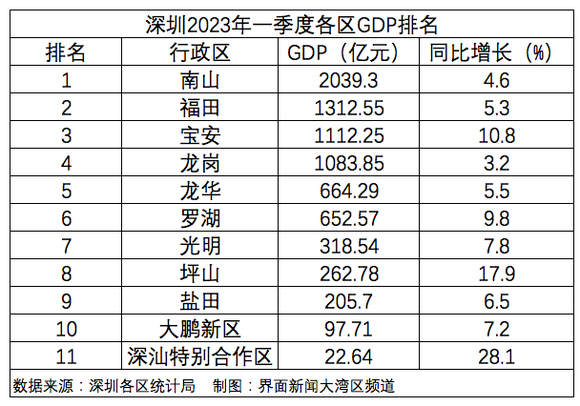 整体而言,今年一季度,深圳各区经济几乎都实现了开门红。