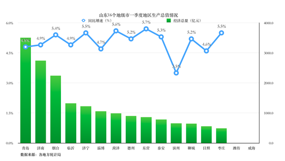 淄博市统计局网站5月6日公布的数据显示,一季度全市实现生产总值1057.7亿元,按不变价格计算,同比增长4.7%。从总量看,在山东省16个地级市中,淄博暂列第6,从增速看,暂时排名倒数第3,但比全国平均水平高出0.2个百分点。