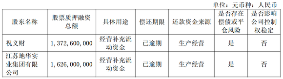 5月9日,中央商场发布股价异动公告称,经核实不存在应披露而未披露的重大事项。公告还提示,其实控人祝义财持有的4.77亿股(约占总股本的42.25%)以及祝义财控制的江苏地华实业集团有限公司(简称“地华实业”)持有的1.67亿股(约占总股本的14.76%)均处于质押冻结状态。