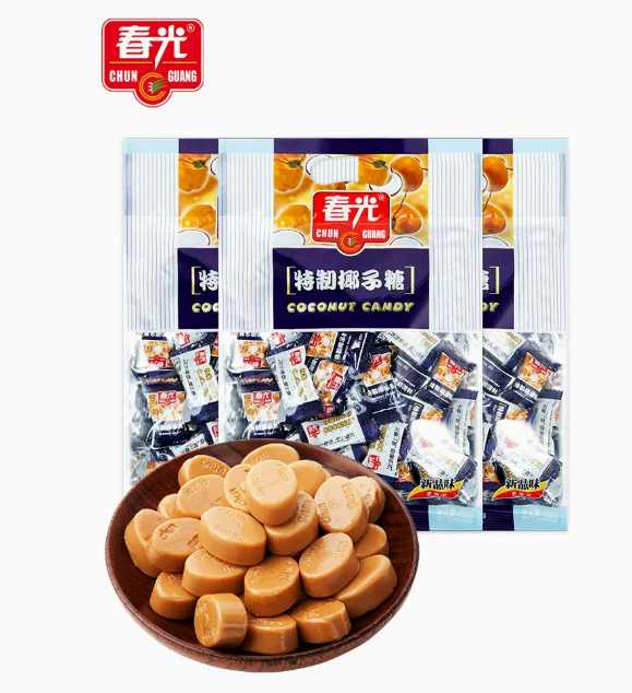 家庭作坊起家的春光食品的销量就不是靠椰汁拉动的,椰子糖是春光推出的第一款主打产品。春光食品靠“椰”吃“椰”,2012年春光食品在春季糖酒会上迎来了高光时刻,黄春光称春光食品为“海南第一手信品牌”,当年的椰子糖市场占有率达70%,所有围绕“椰”元素的手信产品年产量为8000吨,除了国内市场,还远销美国、英国、新加坡等国家。