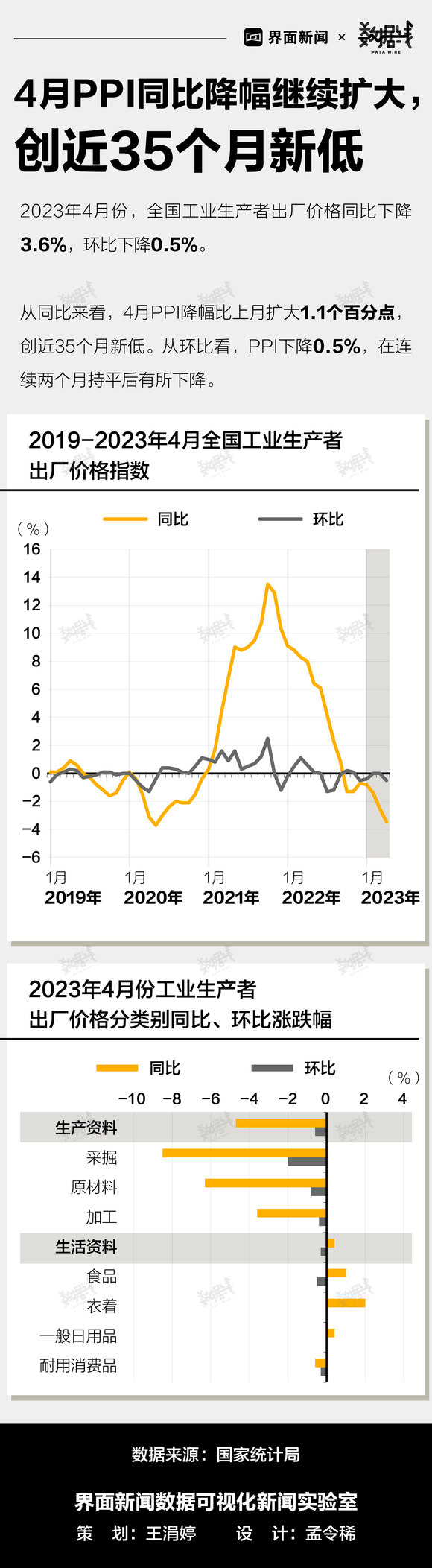 数据 | 4月PPI同比降幅继续扩大,创近35个月新低