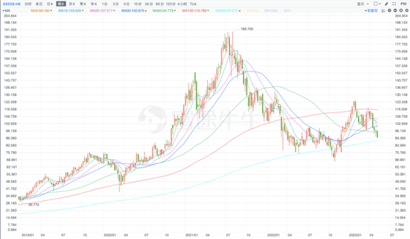 但若拉长时间线看市值,2021年6月29日,安踏总市值达到5023亿港元,时到如今,近乎腰斩。