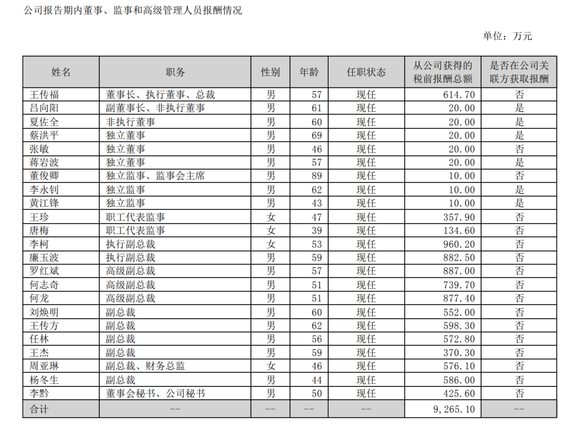 2022年王传福税前报酬总额为614.7万元,排在他前面的还有高级副总裁何龙的877.4万元,以及高级副总裁何志奇的739.7万元。