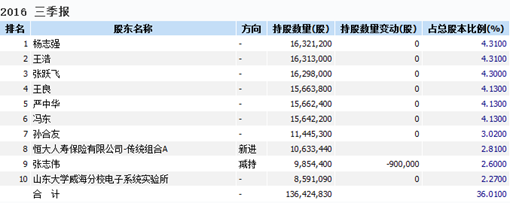 截至三季度末,恒大人寿持有积成电子1063万股。根据积成电子10月28日成交价19.75元/股-21.8元/股之间,简单计算可知,如果两笔均为恒大人寿抛售,恒大人寿当日可能抛售了313万股-347万股,剩余持股数716万股-750万股之间,持股比例不足2%。而从基金持股情况看,从积成电子的三季度的基金持仓数据可以看到,只有汇添富环保行业基金持有600万股,景顺长城中小板基金持有不到200万股。其他的基金持股都少于100万股。