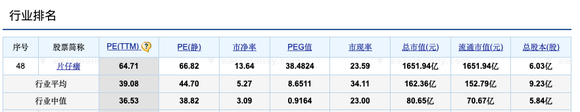 片仔癀虽趋于冷静,但在整个行业里,股价、市值、市盈率依然远远高于行业。