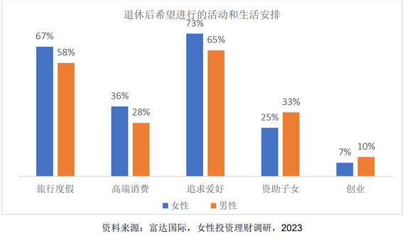 “结合我们前几年的调研,我们看到中国女性在整体财务管理上仍然相对保守和谨慎,尤其是在养老财务规划上,她们需要更理性地提升退休后收入,充分了解自己对于退休生活的要求和目标,认识不同养老金融投资产品特点以及与自己风险偏好的匹配程度。只有尽早为养老做可持续的储备和投资,才能更好地帮助广大女性同胞提升整体财务健康和幸福感,更加从容地享受退休生活。”富达国际北京代表处首席代表丛黎表示。