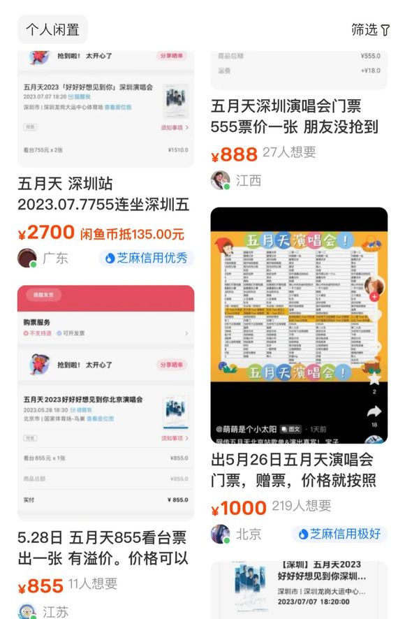 抓狂崩溃的不仅是周杰伦的粉丝,5月9日,五月天北京演唱会开售,5秒之内,6场近30万张门票部售罄。随后,“谁抢到了五月天门票”“五月天抢票”等话题即刻登上热搜。