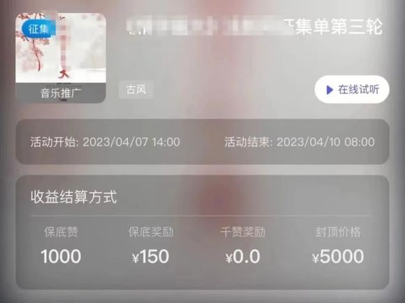 之后,我在考虑做针对宝妈群体的儿童合成照片,这方面的商业化空间大些。我也和其他博主交流过,他们在抖音平台利用AI绘图加“推歌”这种玩法也赚取了不小的收益,月入过万也有,接下来我准备试试。所谓“推歌”就是,我们在抖音用“指定的背景音乐”发布作品,音乐MCN公司会根据你作品的点赞量,给你结算相应的任务奖金。