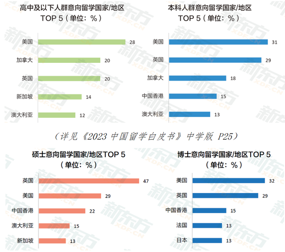 “就近留学”成为本科及以下留学人群的新趋势,硕博留学人群对留学国家/地区选择更加谨慎。