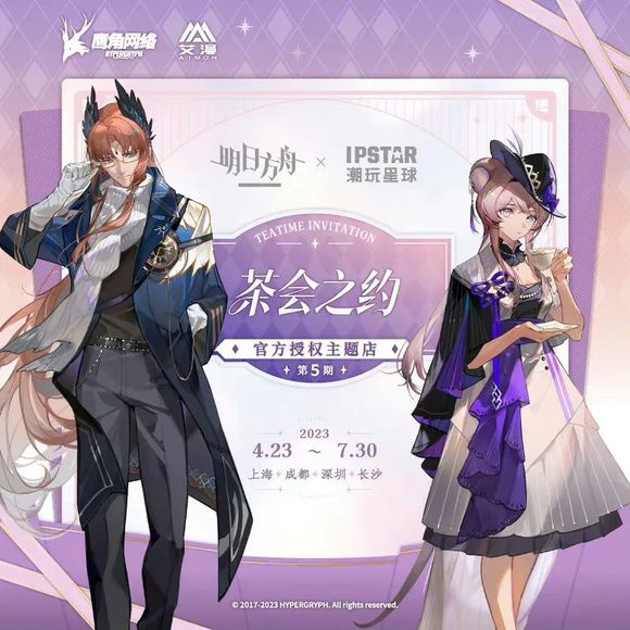 第二,主题快闪店形式。通常是IP与线下二次元新零售品牌店铺进行联动,推出IP主题快闪店,追求的是更沉浸式的氛围体验,以及更广阔的社交互动空间。在这方面为人熟知的是艾漫旗下的IPSTAR潮玩星球,曾获得米哈游和B站的投资,其中米哈游持股10.39%,B站持股9.79%。IPSTAR潮玩星球致力于打造热门IP主题体验店,与《未定事件簿》、《江南百景图》、《碧蓝航线》、《时空中的绘旅人》、《杀破狼》广播剧、初音未来等知名IP有过合作,近期也同时推出了《明日方舟》、《第五人格》、暹罗猫小豆泥、Mikko等热门IP的官方授权主题店。