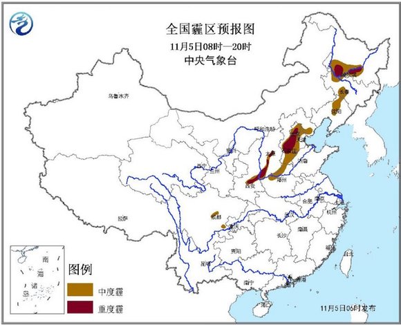 中央气象台11月5日06时继续发布霾橙色预警: