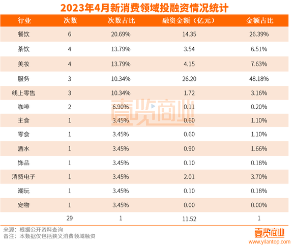 从赛道来看,4月份的融资主要集中在餐饮、茶饮和美妆三个赛道。餐饮赛道仍然是投资人最为青睐的赛道,而美妆在经历了过去几个月的冷静之后,再次获得了不少投资人的关注。