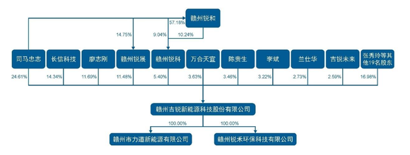 目前,吉锐科技的股权相对分散,控股股东、实际控制人为司马忠志。其直接持有公司24.61%的股份,通过担任赣州锐展、赣州锐科执行事务合伙人间接控制公司16.88%的股份的表决权,直接和间接合计控制41.49%股份的表决权。若本次IPO完成,司马忠志控制的表决权比例将下降为31.12%。