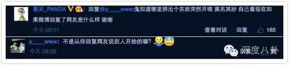 再说网页版。细翻了葛天的微博,都找不到截图里的对话,从评论显示的时间来看应该是卡在了这两条评论之间。