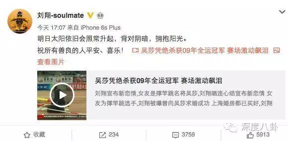 以及刘翔和吴莎公开后火速发的微博“世界读懂了所有”。