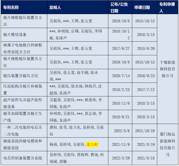 宁德时代对吴祖钰的宽宏大量远不止于此。吴祖钰挖宁德时代的墙脚,宁德时代都能忍。正如上面专利技术列表所示,海辰的专利技术“储能系统的储电模块和储能系统”,专利发明人不仅有吴祖钰,还包括张万财。张万财和吴祖钰一样,参加过2018年宁德时代的股权激励计划。