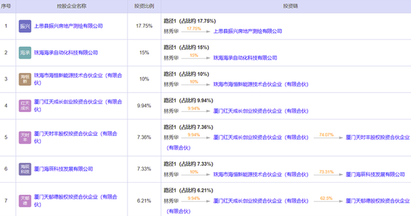 天眼查显示,林秀华曾任垒知控股(曾用名:建研集团)的股东。2010年厦门建研集团上市前,公司有50 名自然人股东,其中林秀华持有2%的股权。从这一点判断,林秀华肯定早已实现财务自由。
