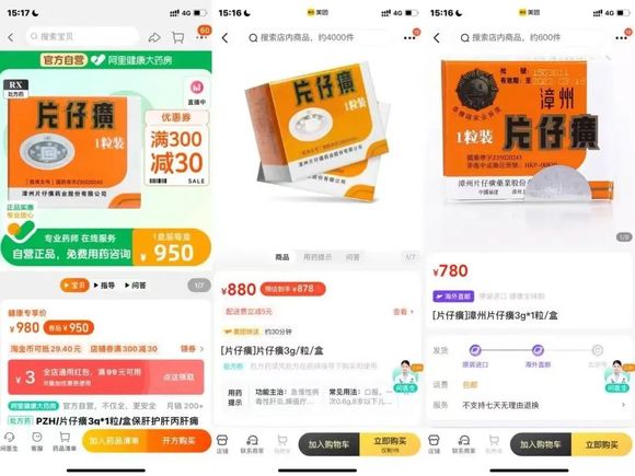 此轮调价过后,经过检索,京东片仔癀大药房旗舰店3g*1粒/盒的片仔癀锭剂,24小时就已售出1000件。在阿里健康大药房,片仔癀的价格已经飙升到了980元/粒。