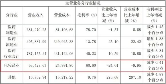今年一季度表现则更为惨淡,片仔癀的化妆品业务营收仅为1.09亿元,同比减少42.78%,毛利率为60.67%,同比减少8.42个百分点。