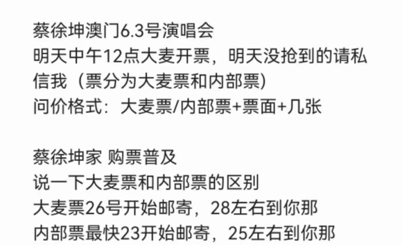 5月18日,蔡徐坤演唱会澳门演唱会开票,给如火如荼的抢票大战再添一把火。