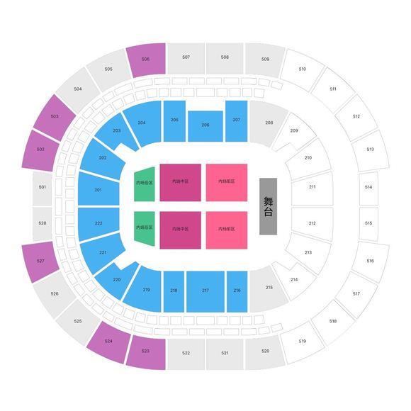 以经常承接偶像演唱会的大麦上海梅赛德斯奔驰选座数据为例。三面台极限开座9522席位,三面台场馆开座8270席位,内场6个小区总席位2480座,加上包厢席位可达13000上下。粉丝团票区域大多控制在五百人之内。