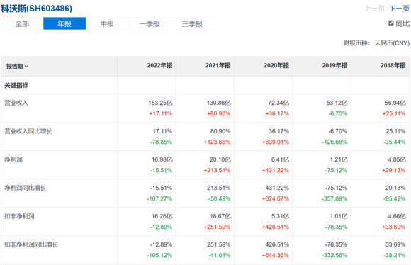 2022年半年报显示,报告期内科沃斯营收增速为27.31%,利润增速为3.15%,相比于2022年一季度,利润增速下滑了近20%。