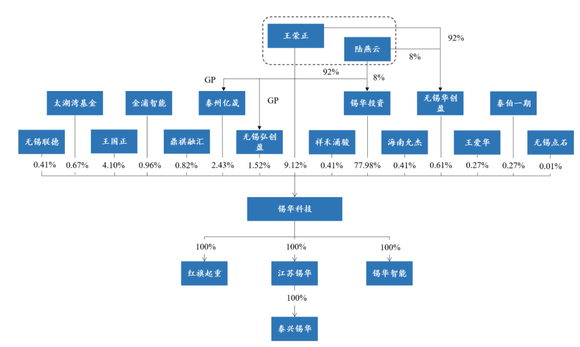 目前,王荣正、陆燕云夫妇为锡华科技共同实际控制人,两人通过直接控制锡华投资间接持有公司77.98%的股权,同时王荣正还直接持有公司9.12%股权,并通过担任泰州亿晟、无锡弘创盈、无锡华创盈执行事务合伙人控制公司4.56%股权对应的表决权。因此,两人合计控制公司91.66%股权对应的表决权。