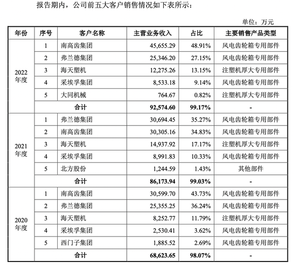 对此,锡华解释称公司客户相对集中,与风电齿轮箱行业竞争格局较为集中的发展现状相一致。