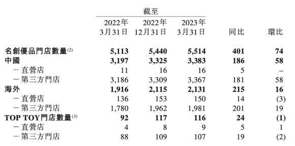 门店方面,截至2023年3月31日,名创优品全球门店数达5514家,其中国内门店数3383家,同比净增186家,环比净增58家。值得注意的是,海外门店数2131家,同比净增215家,环比净增16家。名创优品在财报中谈到,根据目前的情况判断,公司有信心能够超越2023年在中国净开设250—350家门店的目标。