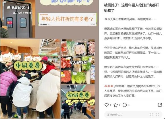 与大学生不同,初入社会的年轻打工人往往比大爷大妈们更疯狂,老年人是早起到菜市和超市“抢新鲜”,而这届年轻则是晚上出动“抢香宜”。(图源:看透成都)