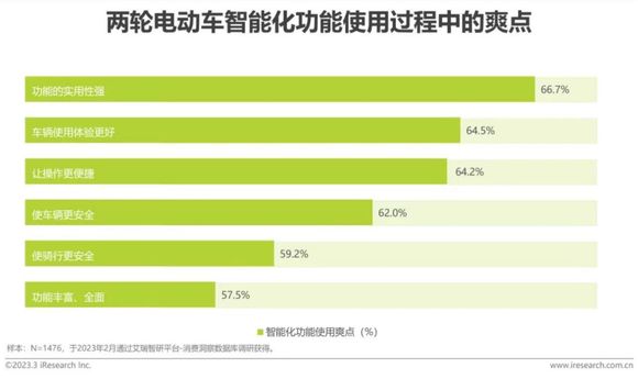 值得注意的是,多数支撑智能化功能的产品并不高端。例如小牛、九号、雅迪、台铃等企业3500元以上的产品,通常就会加入智能化支持。这说明,随着技术不断成熟,中低端产品也能接入、提高智能化水平,增强产品竞争力。