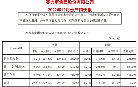不仅赛力斯汽车卖得好,赛力斯集团的新能源汽车在整个2022年都表现卓越。总计销售了13.5万辆,同比增长超225%。