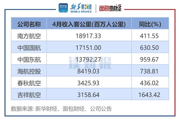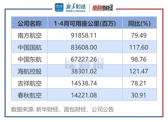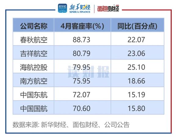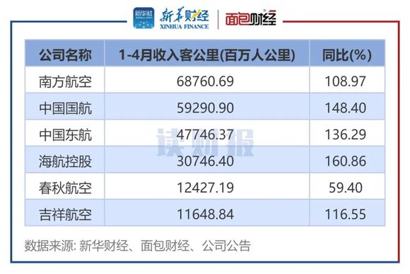 而从4月单月情况来看,6家航空公司的客座率、收入客公里以及可用座公里数据同比亦均有提升;其中,春秋航空的客座率居首,达88.73%,南方航空则在收入客公里及可用座公里方面居6家首位。