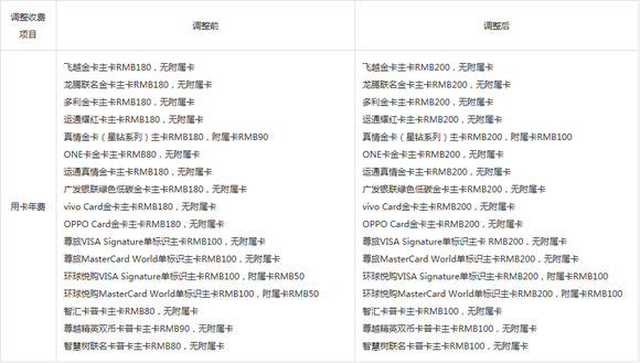 其中,广发奕健康信用卡金卡主卡、广发奕驾金卡主、广发奕购金卡主卡年费增加至200元,广发奕驾金卡附属卡和广发奕购金卡附属卡年费增加至100元。