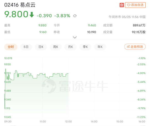 今日开盘,易点云报9.72港元/股,较发行价跌7.16%。截至午间休市,易点云报9.80港元/股,市值56.28亿港元。