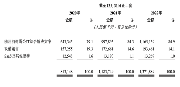 易点云营收来源于随用随还办公IT租赁综合解决方案、设备销售、SaaS及其他服务。其中,主要收入来源为随用随还办公IT租赁综合解决方案业务,即IT办公设备租赁服务。