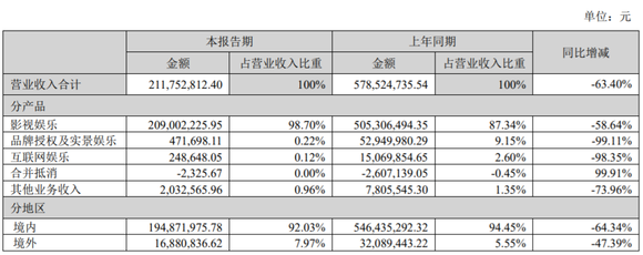 但在不断减持的操作下,华谊兄弟的互联网娱乐板块的收入也在日渐减少。