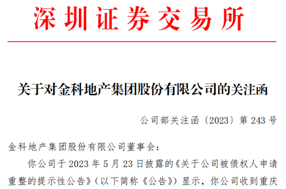 金科股份在5月23日披露了公司被债权人申请重整的情况。