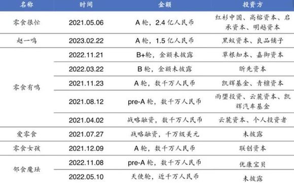 事实上,近两年新一代的线下零食连锁行业,可谓是一片火热,拿融资拿到手软。就在今年2月,“赵一鸣零食”拿下了黑蚁资本、良品铺子的1.5亿融资;去年,“零食有鸣”拿到了千万元级别的Pre-A轮融资;而“零食很忙”则早在2021年就拿下了2.4亿元的A轮融资。