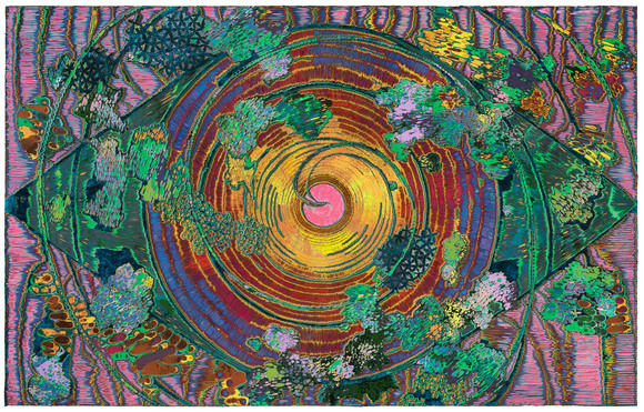 去中心化意味着人类只是众多物种之一,不再居于地球舞台中央,而对于艺术家姜淼来说,它还可以被提升至宇宙的层次,让人意识到自己沧海一粟般的渺小。在白石画廊北京空间的开幕大展“我爱中国”中,各位代理艺术家均为展览创作了一幅作品,姜淼的木板丙烯绘画《天眼.2022.10.16.》表达的就是一种对于生命的敬畏。