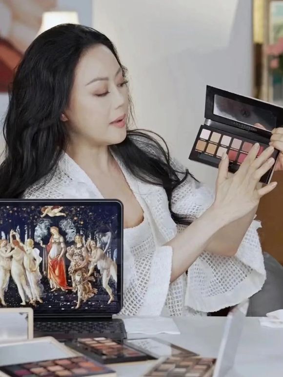 直播间内,没有低价的叫卖,只有章小蕙不疾不徐从美学角度出发的介绍,其中讨论度最高的莫过于她用文艺复兴时期的名画《春》来推销眼影盘,试问哪个女生能抵挡住“你看仙子的薄纱就是这块眼影的颜色”的介绍词。