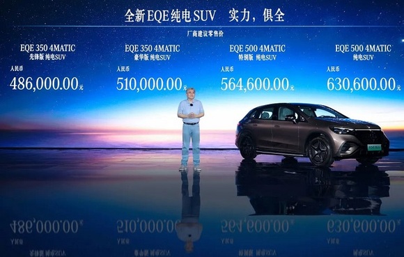 5月27日,北京奔驰全新纯电动中型SUV EQE SUV正式上市。新车提供4种配置,售价区间48.6至63.06万元人民币。EQE SUV是北京奔驰推出的第五款纯电动车型,基于奔驰EVA纯电动平台制造,提供后驱和四驱两种驱动形式。
