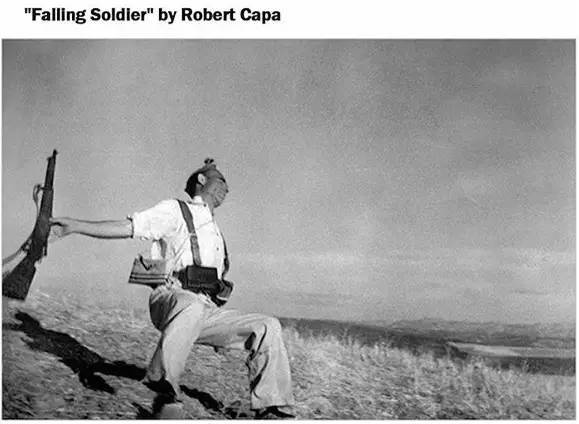 这张士兵中枪倒地的照片,虽然没有什么激烈的战斗过程,但无声的画面却带来了更强的视觉张力,一个鲜活的男人,后一秒即将倒地身亡,而他的身影被永远定格在了中间的0.5秒。以至于很多人称它为有史以来最伟大的战争照片之一。
