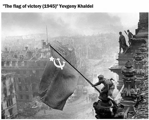 1945年,苏联士兵爬上德国国会大厦摇旗呐喊的那一个幕,既代表了纳粹德国的土崩瓦解也预示着和平的到来,这个鼓舞人心的瞬间就是被苏联红军摄影家Yevgeny Khaldei用来徕卡相机记录下来的。这张照片也是二战中最著名、最有代表性的照片之一。