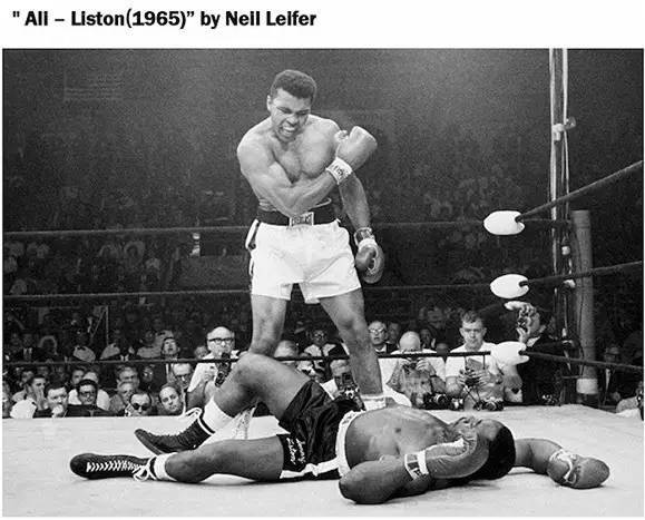 拳王的名号不是浪得虚名,阿里在缅因州路易斯进行的重量级拳王挑战赛上,在第一回合仅用2分钟就击倒了挑战者利斯顿,这张照片也被《体育画报》称为“世纪最佳体育照片”。