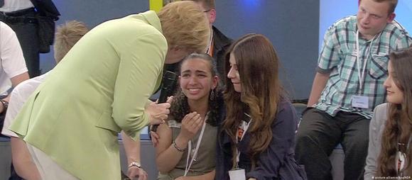 默克尔极少在公共场合表露感情,这是她为数不多的动情时刻。这个细节被电视拍了下来,传播到德国的千家万户。观众里就包括了波黑裔德国籍作家萨沙·斯坦尼西奇(Saša Stanišić)。在日后的采访中,他回忆,自己当时反复观看了那个视频片段。“一个小孩的短暂人生处于被送回战争地区的边缘,你可以看出,默克尔对这样的私人故事没有做好准备……她把手放在女孩的肩上,我感觉她的内心深处受到了某种触动。”