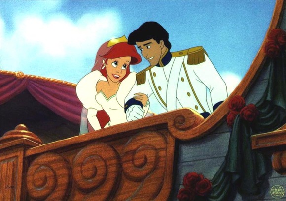 爱丽儿与艾瑞克相处的戏份揭示了两人的意气相投,也展现了男主角对女主角的“倾听”与尊重:虽然爱丽儿无法说话,但她机智地向艾瑞克展示了自己关于海洋世界的知识,让他准确地念出了自己的名字。值得一提的是,在战胜乌苏拉的高潮戏中,是爱丽儿而非艾瑞克发挥了关键作用。爱丽儿操纵了轮船的方向舵——回应了她第一次浮出海面观察水手一举一动的细节——令船只的桅杆迎向乌苏拉刺死对方。电影最终的结局是爱丽儿与艾瑞克终成眷属,携手踏上航海之旅。