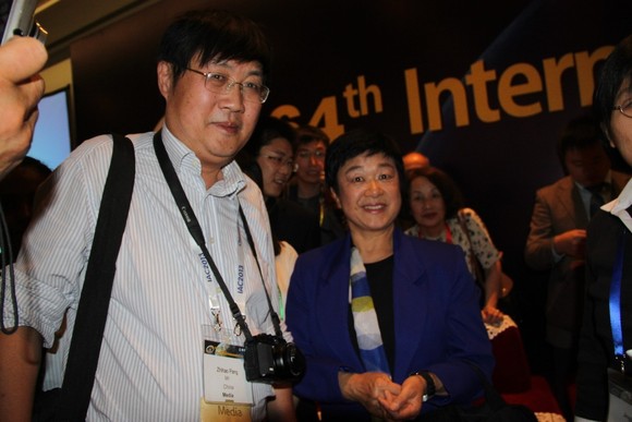 庞之浩与亚洲第一位女航天员向井千秋在国际宇航大会合影