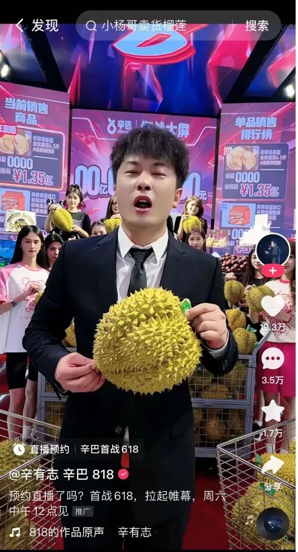 ▲ 辛巴卖榴莲直播预告。图 / 截图